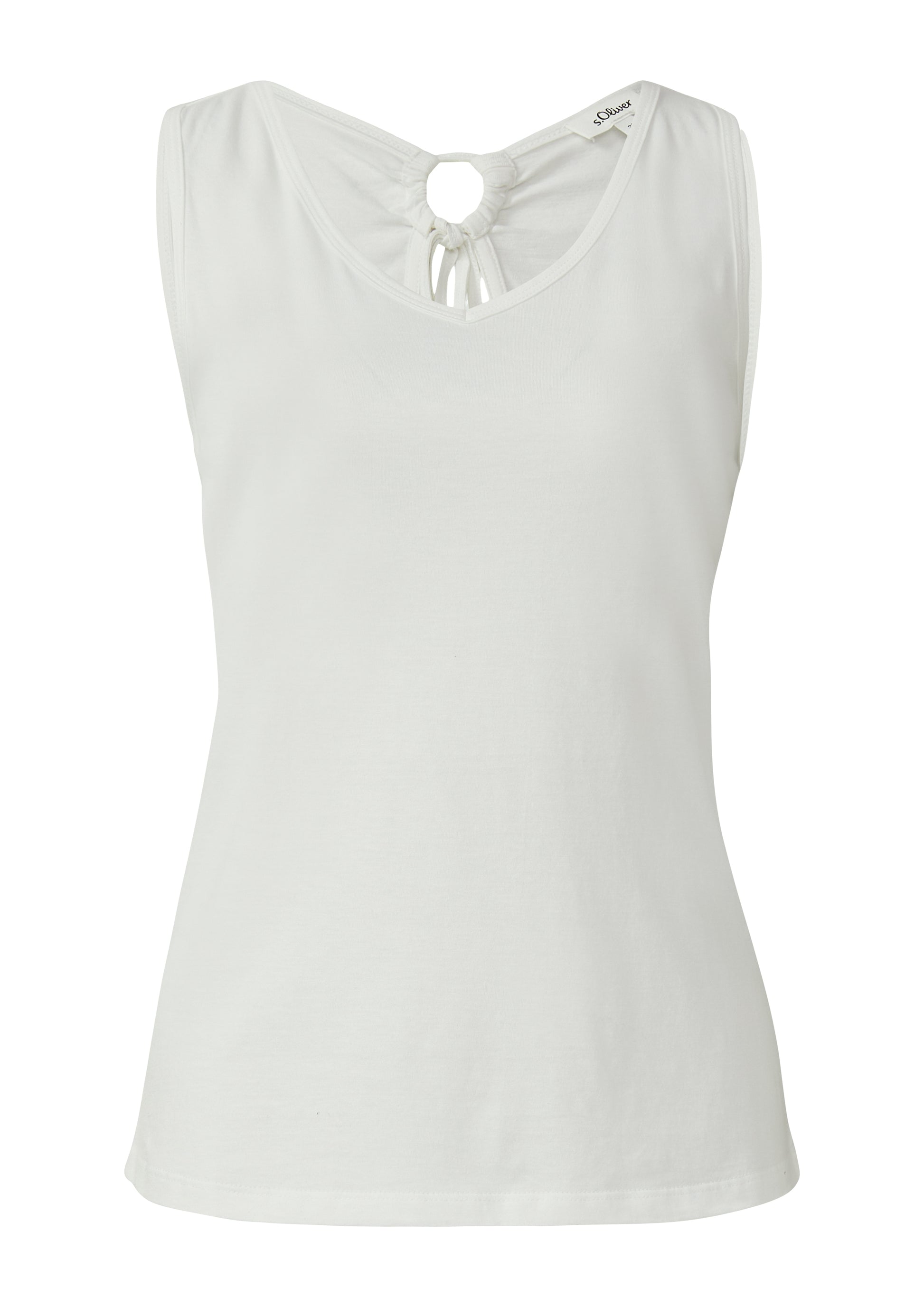 Lust auf einen sommerlichen Hingucker? Dieses Jersey-Top mit raffiniertem Cut-out und Bindeband ist dein neuer Liebling! Ob beim Picknick im Park oder im Urlaub – dieses Top ist ein wahrer Hingucker. Der V-Ausschnitt und der leicht elastische Stoff schmeicheln deiner Figur. Perfekt für entspannte Tage und laue Sommernächte!