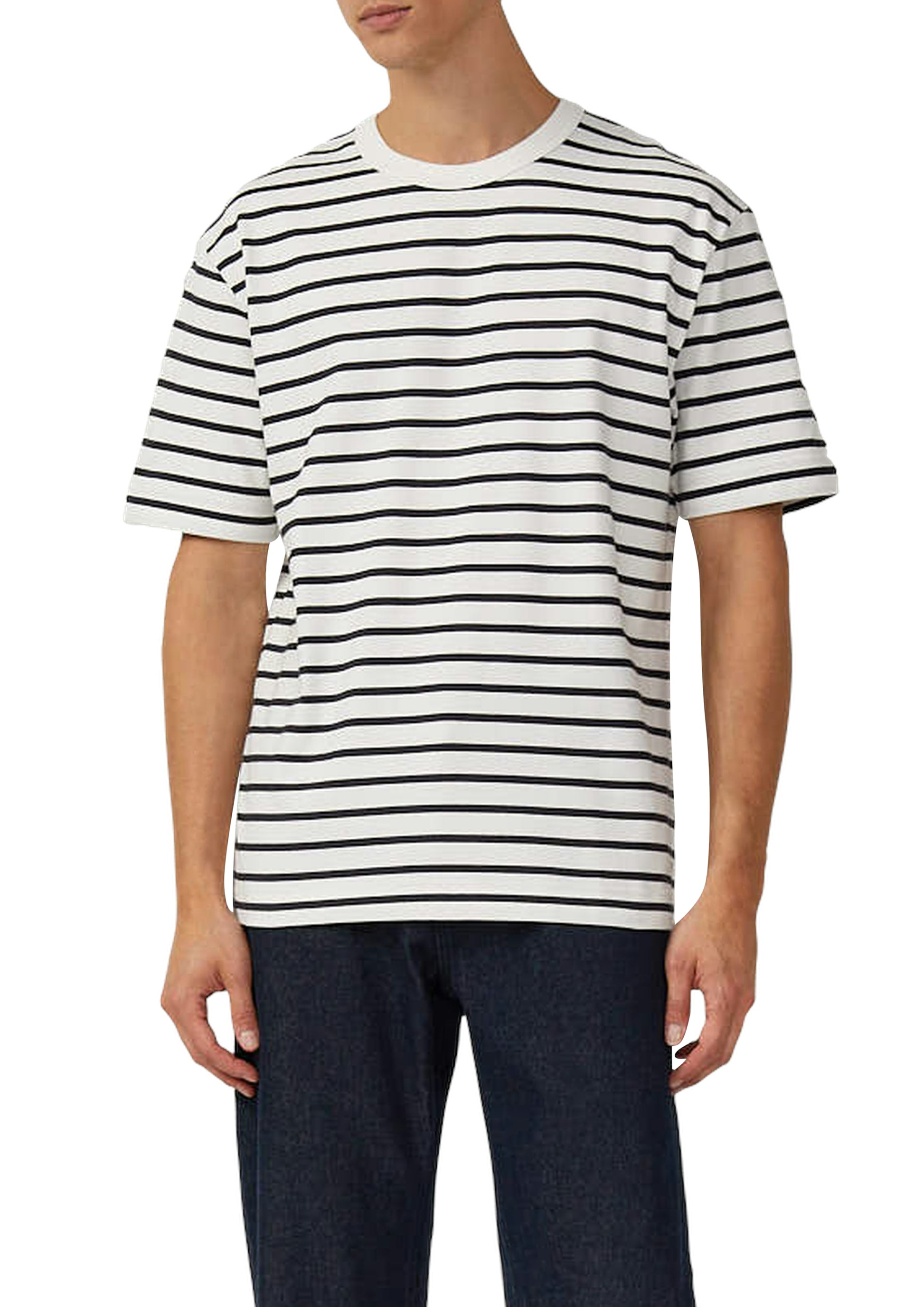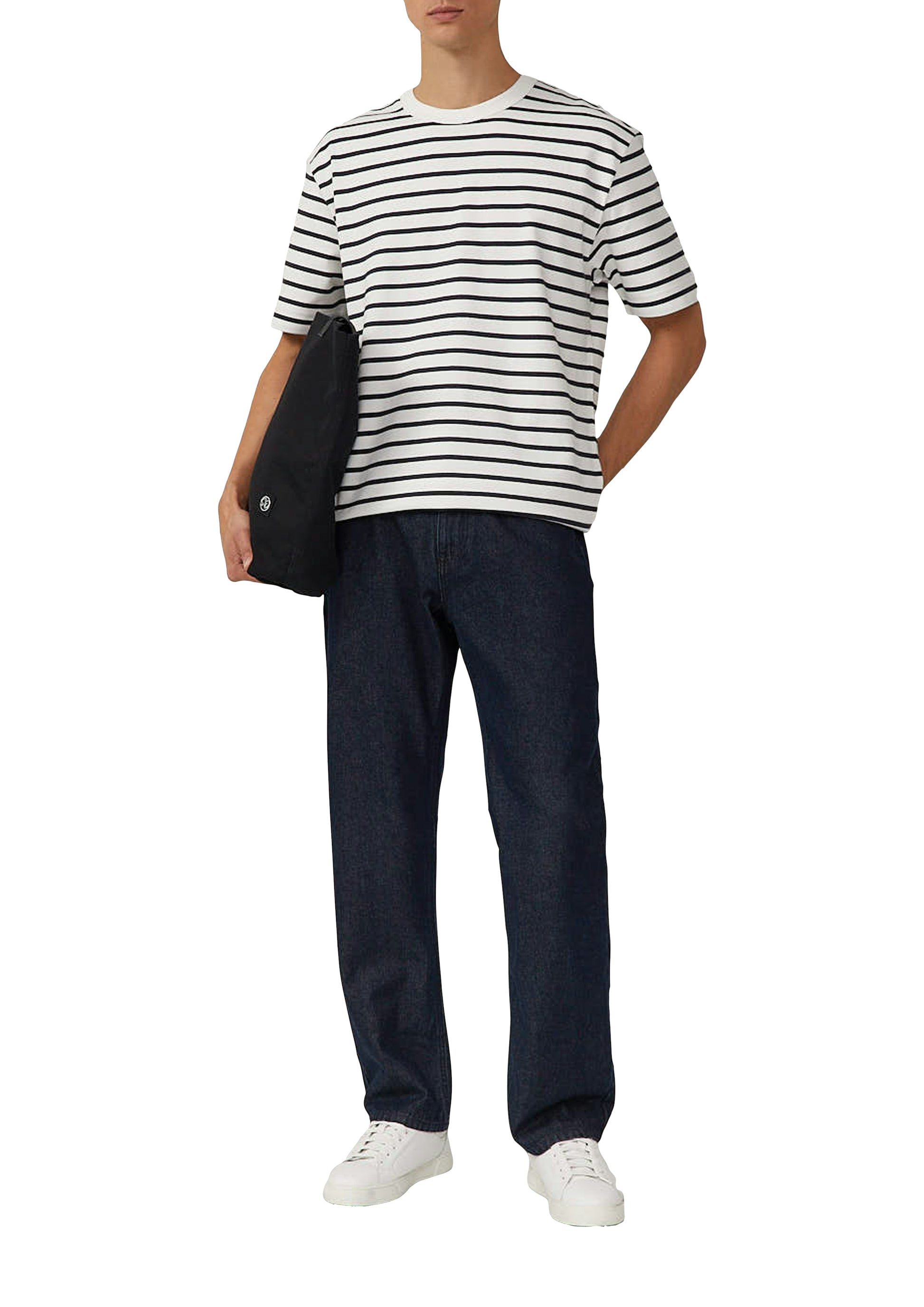 Gestreiftes Heavy-Jersey T-Shirt im Relaxed Fit: Dein lässiger Begleiter für jeden Tag. Hochwertige Baumwolle und ein Logo-Detail verleihen dir einen entspannten, aber stilvollen Look. Perfekt für deinen individuellen Casual-Style.