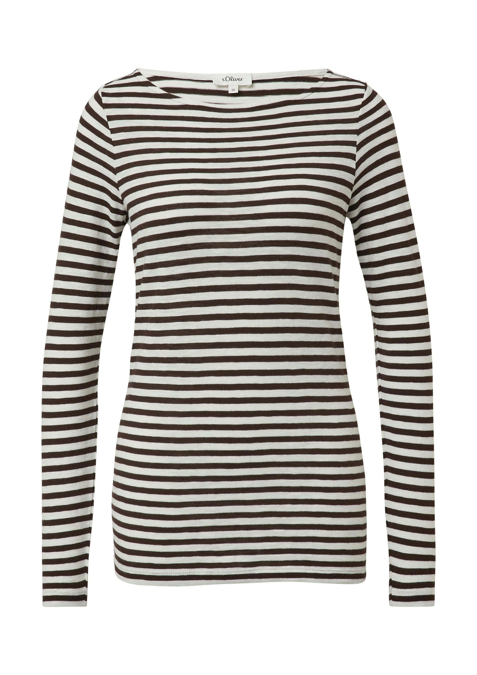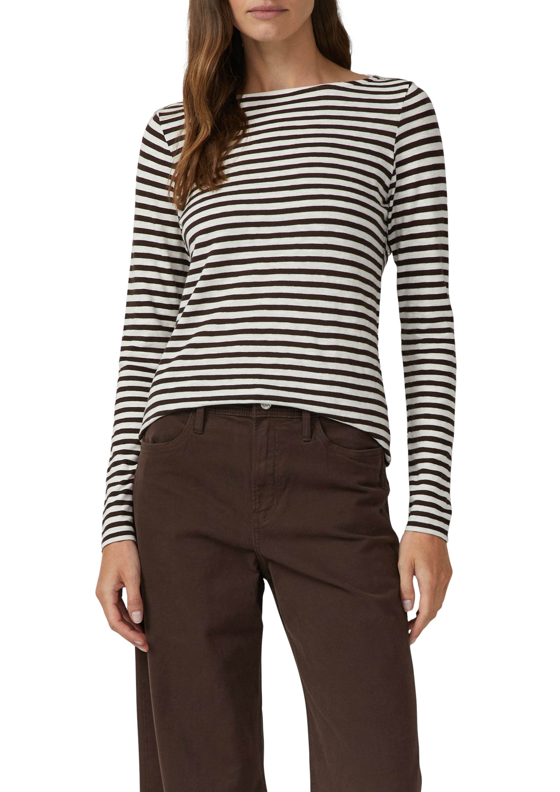 Gestreiftes Longsleeve mit U-Bootausschnitt für lässige Alltagsmomente. Weicher Jersey und Flammgarn-Optik sorgen für Komfort. Die Slim-Fit-Passform schmeichelt deiner Silhouette. Ein vielseitiger Begleiter für entspannte Tage.