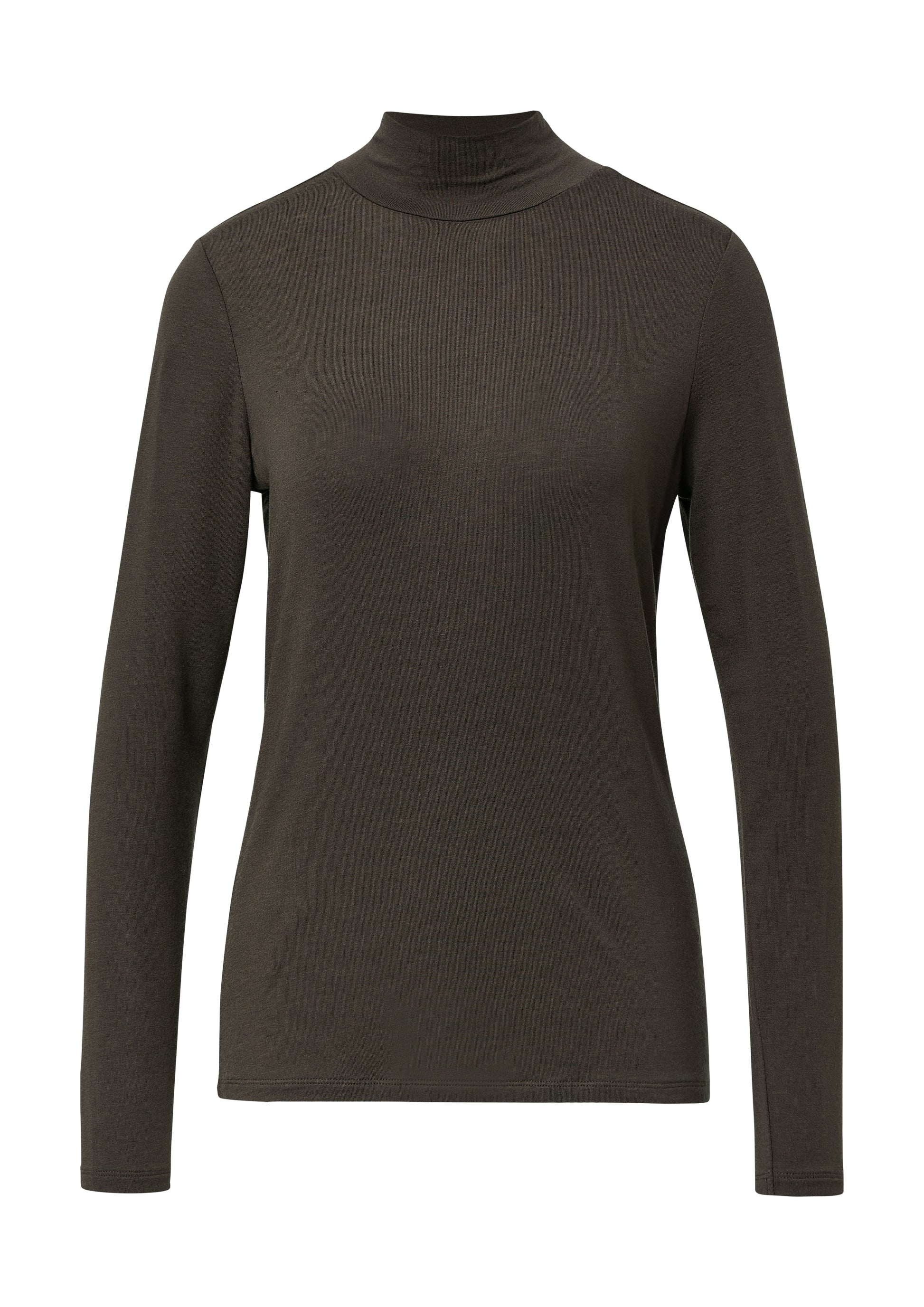 Raffinierte Eleganz trifft auf zeitgemäßen Chic: Das semitransparente Shirt mit Stehkragen ist ein wahres Multitalent in Ihrem Kleiderschrank. Der zarte Feinstrick schmiegt sich angenehm an Ihre Haut und kreiert eine schmeichelnde Silhouette. Dank des Regular Fits und der langen Ärmel lässt sich dieses Piece vielseitig stylen – vom Business-Look bis zum eleganten Abend-Outfit.