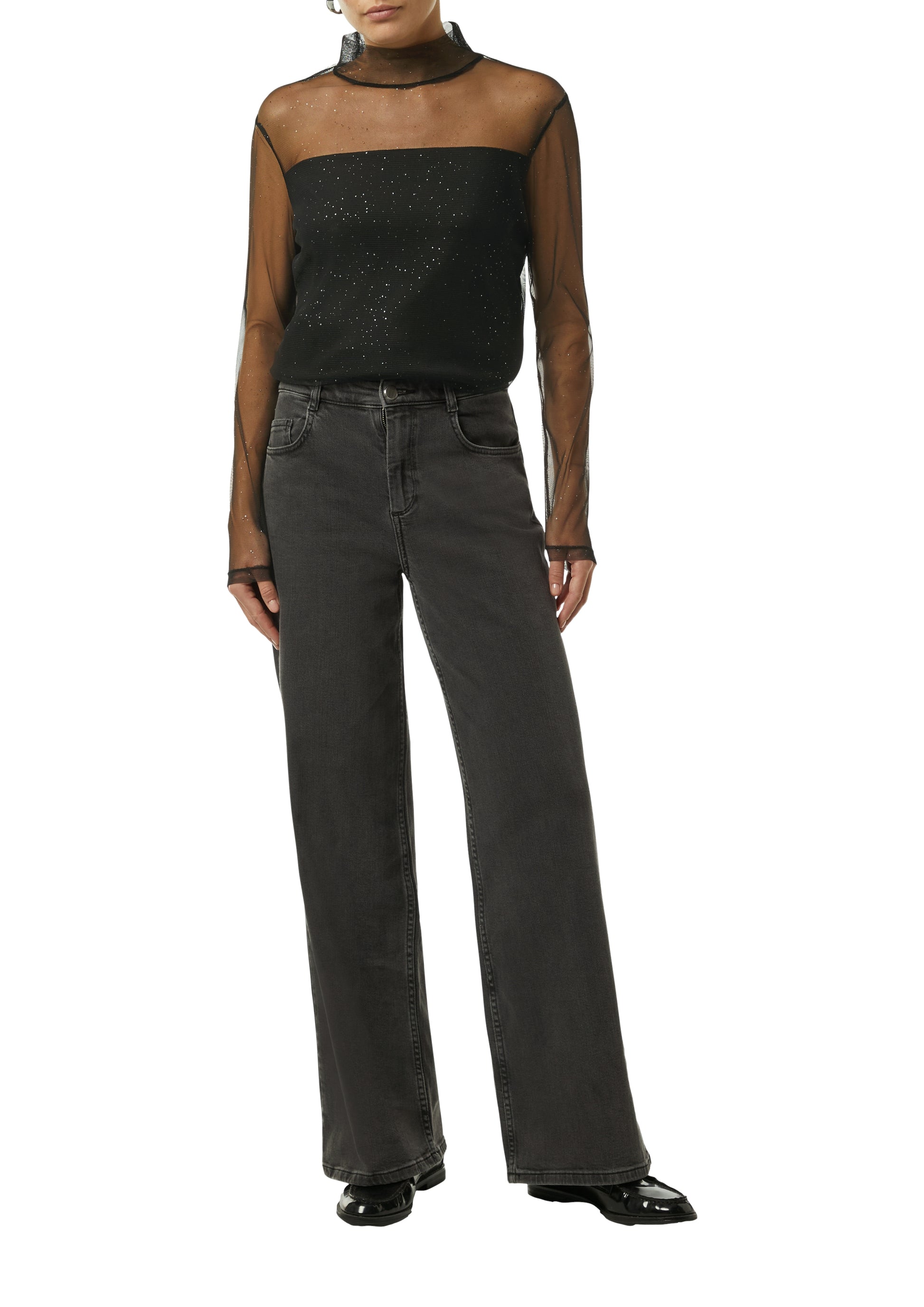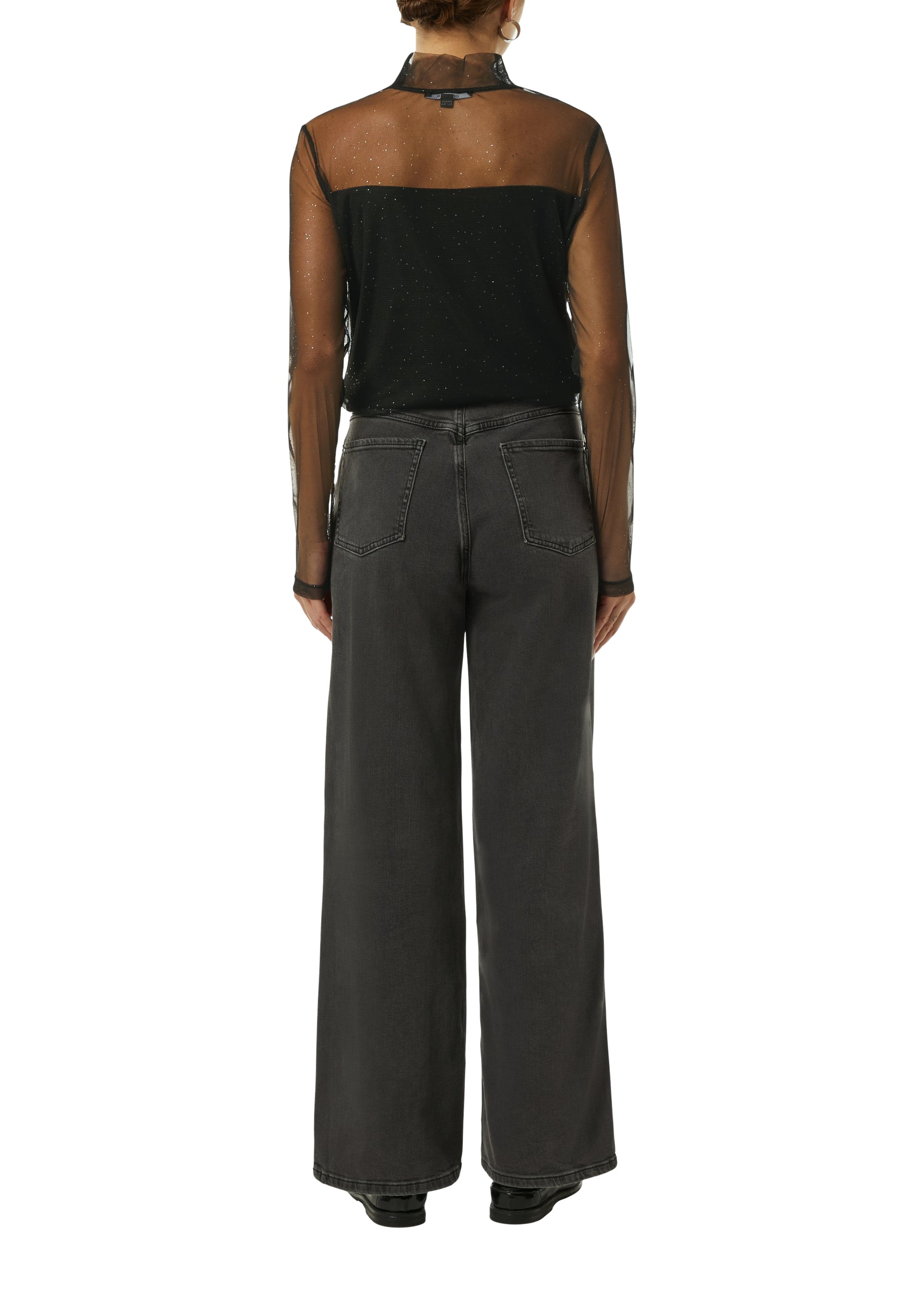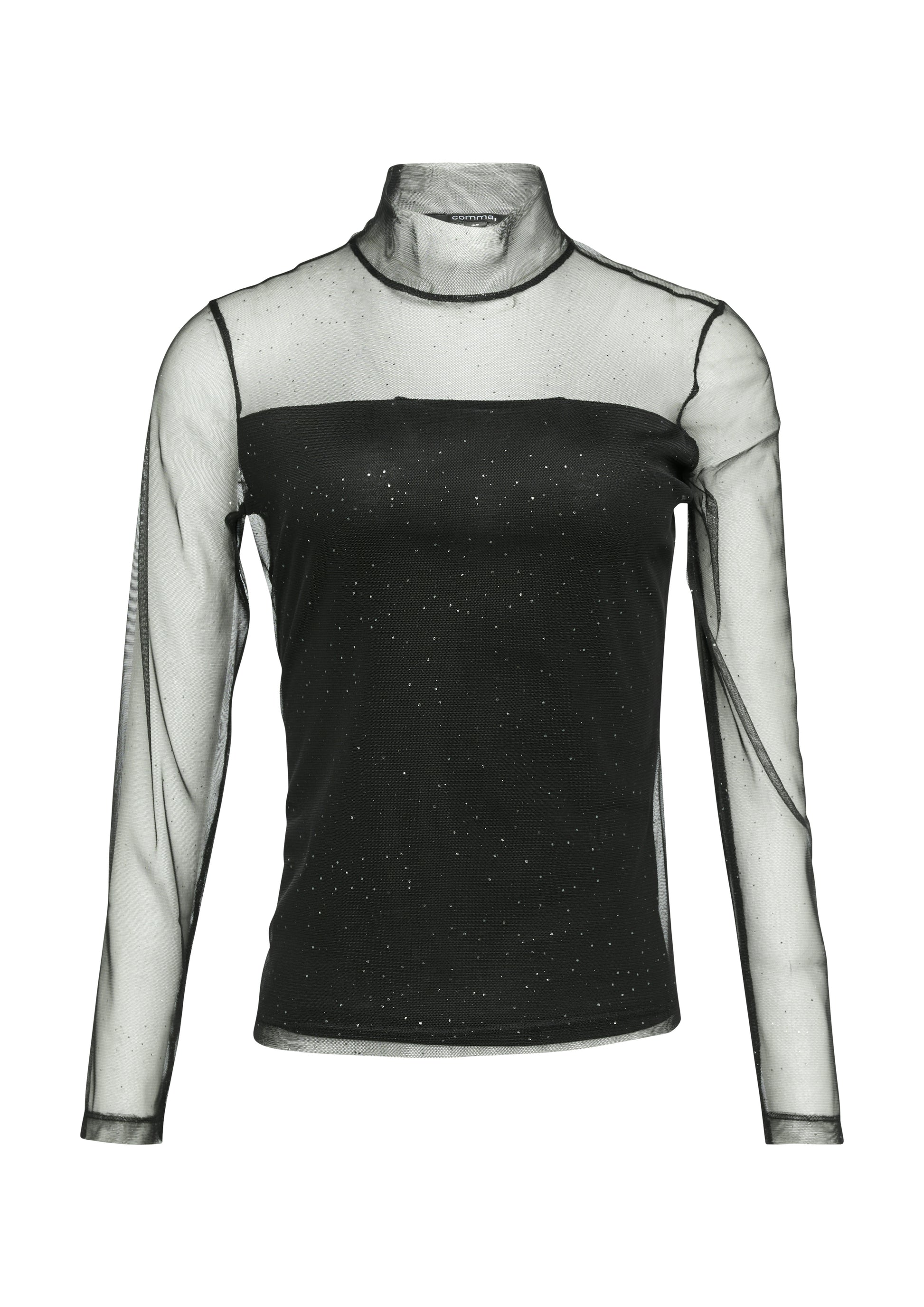 Glitzernde Mesh-Eleganz für Ihren Auftritt! Dieses langärmlige T-Shirt vereint Glamour und Komfort. Der Rundhalsausschnitt und der Stehkragen verleihen Ihnen eine feminine Silhouette, während das Jerseyfutter für angenehmen Tragekomfort sorgt. Der Folienprint setzt glänzende Akzente. Stylen Sie es mit einer Lederjacke für einen edgy Look oder mit einem Blazer für einen eleganten Auftritt.
