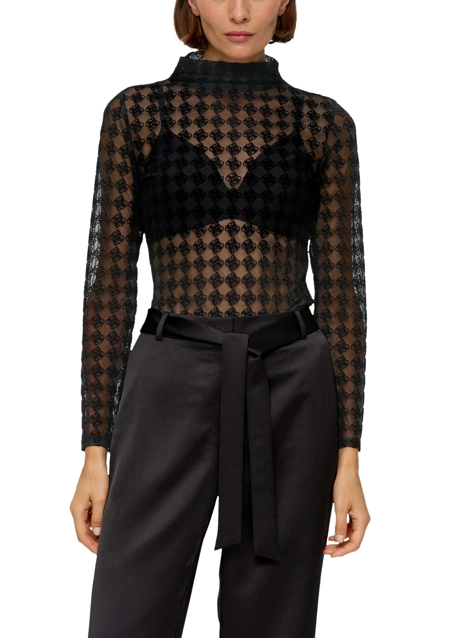 Entdecke das feminin-elegante Mesh-Longsleeve mit Allover-Print, ein absolutes Must-Have für deinen Alltags-Look! Dieses langärmlige Slim-Fit T-Shirt verleiht dir die perfekte Mischung aus Komfort und Stil. Der elastische Stoff sorgt für eine angenehme Passform, während der modische Stehkragen einen Hauch von Raffinesse hinzufügt. Trage es lässig zu Jeans für einen entspannten Tag oder kombiniere es mit einer schicken Hose für einen trendigen Abend-Look. Lass deiner Kreativität freien Lauf und style dieses vielseitige T-Shirt zu jeder Gelegenheit! Möchtest du dein Outfit auf das nächste Level bringen?