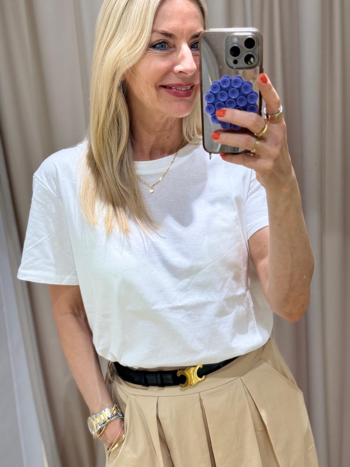 Unser Basicshirt aus softem Baumwollmix vereint cleanes Design mit perfektem Sitz. Der lässige Schnitt und der klassische Rundhalsausschnitt machen es zum vielseitigen Stylingpartner – ob solo getragen oder unter Blazer & Strick. Erhältlich in 7 zeitlosen Farben für jeden Look.
