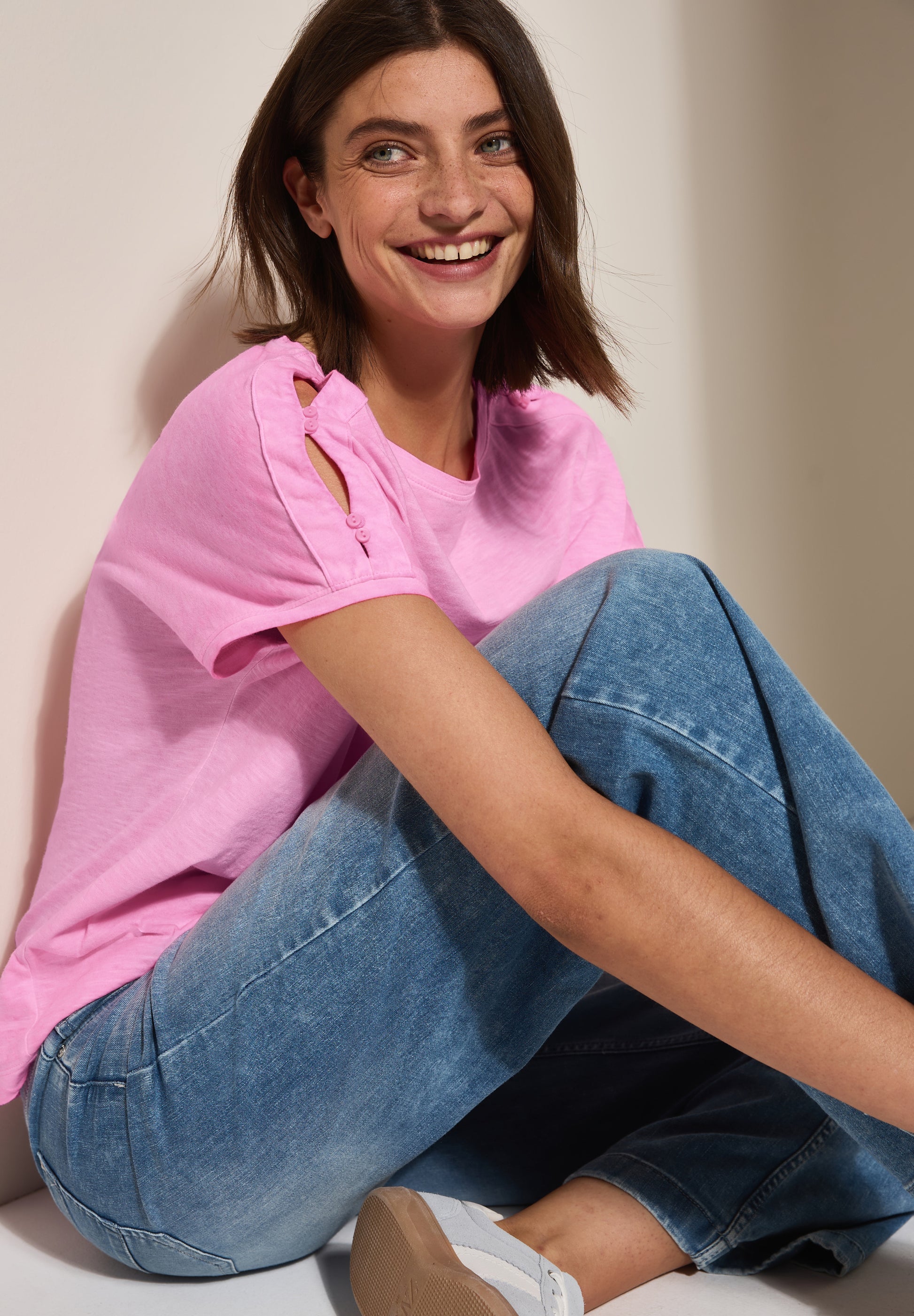 Dieses Shirt von CECIL für Damen punktet mit einer angesagten Washed-Optik und dem soften Baumwoll-Modalmix. Der U-Boot-Ausschnitt und die Knopfdetails an den Schultern setzen modische Akzente. Ein lässiges Lieblingsstück für den Alltag! Shirt im Washed-Look U-Boot-Ausschnitt Kurzarm Knopfdetail an den Schultern Softer Baumwoll-Modalmix Material: 100% Baumwolle