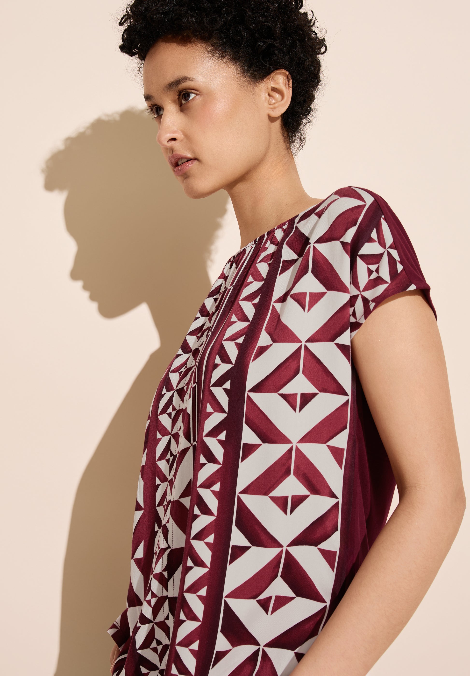 Das T-Shirt mit Print von Street One für Damen ist ein lässiges Sommershirt mit einem Rundhalsausschnitt mit Schlitz. Die weiche Viskosefront verleiht ihm einen angenehmen Look, während der bequeme Shirtrücken für zusätzlichen Komfort sorgt. Seitliche Schlitze im Saum ermöglichen eine optimale Bewegungsfreiheit und verleihen dem Materialmix Shirt eine verspielte Note. T-Shirt Rundhalsausschnitt mit Schlitz Softe Viskose Front Bequemer Shirtrücken Seitliche Schlitze im Saum Material: 100% Viskose