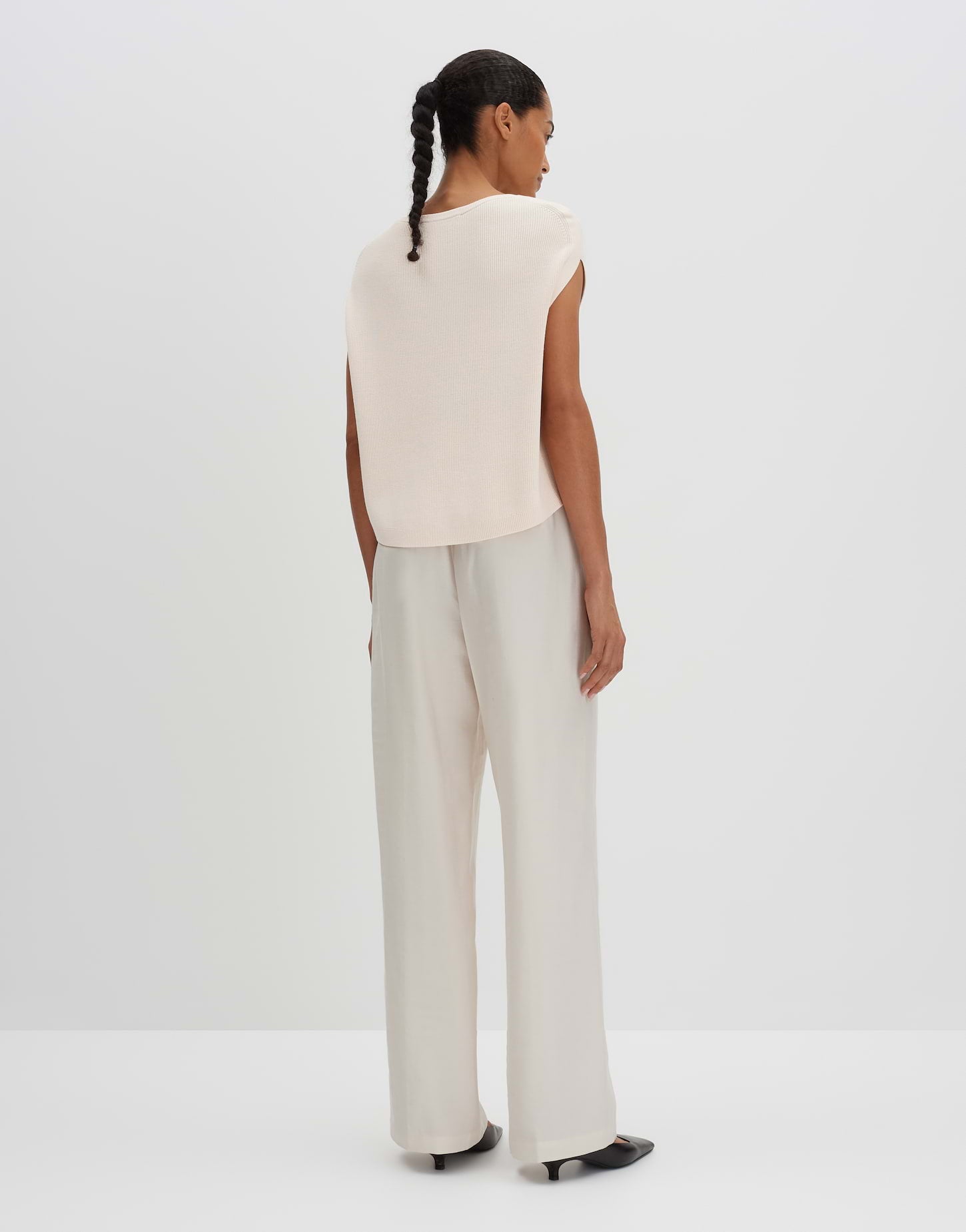 lockere Passform, O-Form, überschnittener Kurzarm, U-Boot-Ausschnitt, Rückenlänge ca. 58 cm bei Größe S, Model Größe 178 cm – trägt Größe S, Feinstrick, feine Rippstruktur, weicher Griff