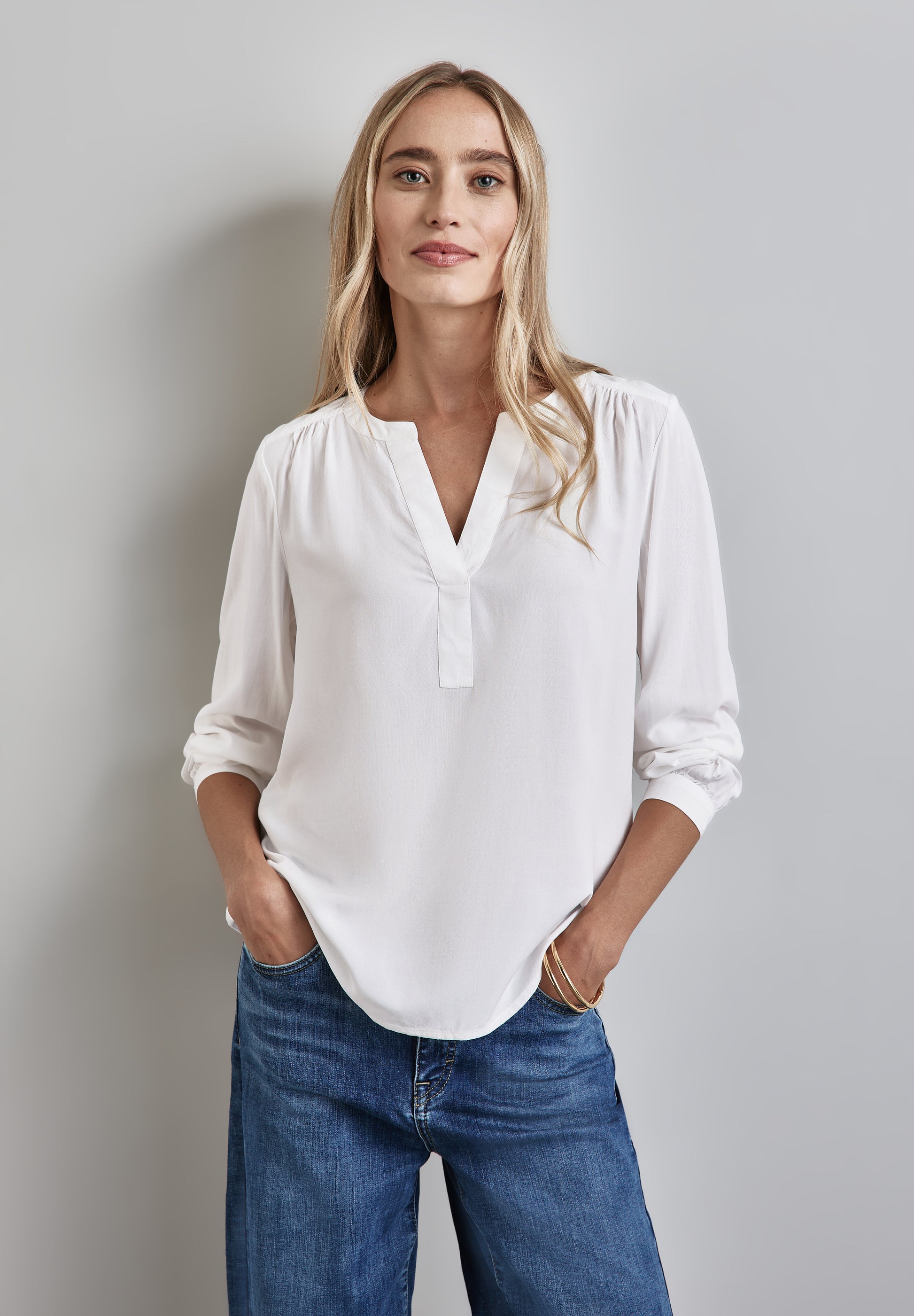 Die Tunika in Unifarbe von Street One für Damen überzeugt durch ihren geschlitzten Rundhalsausschnitt und die leichte Raffung im Nacken. Die weiche Viskose und die langen Ärmel mit Bündchen und Knopf sorgen für hohen Tragekomfort. Ein vielseitiges Basic für zahlreiche Gelegenheiten. Damenbluse Geschlitzter Rundhalsausschnitt Langarm mit Bündchen und Knopf Leichte Raffung im Nacken Weiche Viskose Material: 100% Viskose