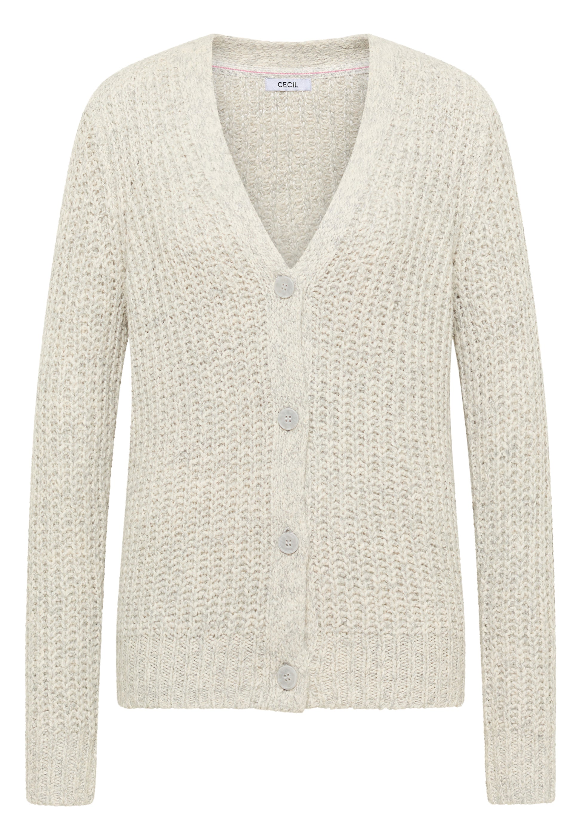 Der Two Tone Cardigan von CECIL für Damen begeistert mit seiner spannenden Melange-Optik und dem soften Baumwollmix. V-Ausschnitt, Knopfleiste und chunky Strick machen die Strickjacke zum stilvollen Begleiter für lässige Outfits. Rippbündchen an den Ärmeln sorgen für einen angenehmen Sitz und runden das Design ab. Chunky Strickjacke mit Knopfleiste V-Ausschnitt Langarm mit Rippbündchen Two Tone Optik Softer Baumwollmix Material: 58% Baumwolle, 24% Polyacryl, 10% Nylon, 8% Polyester
