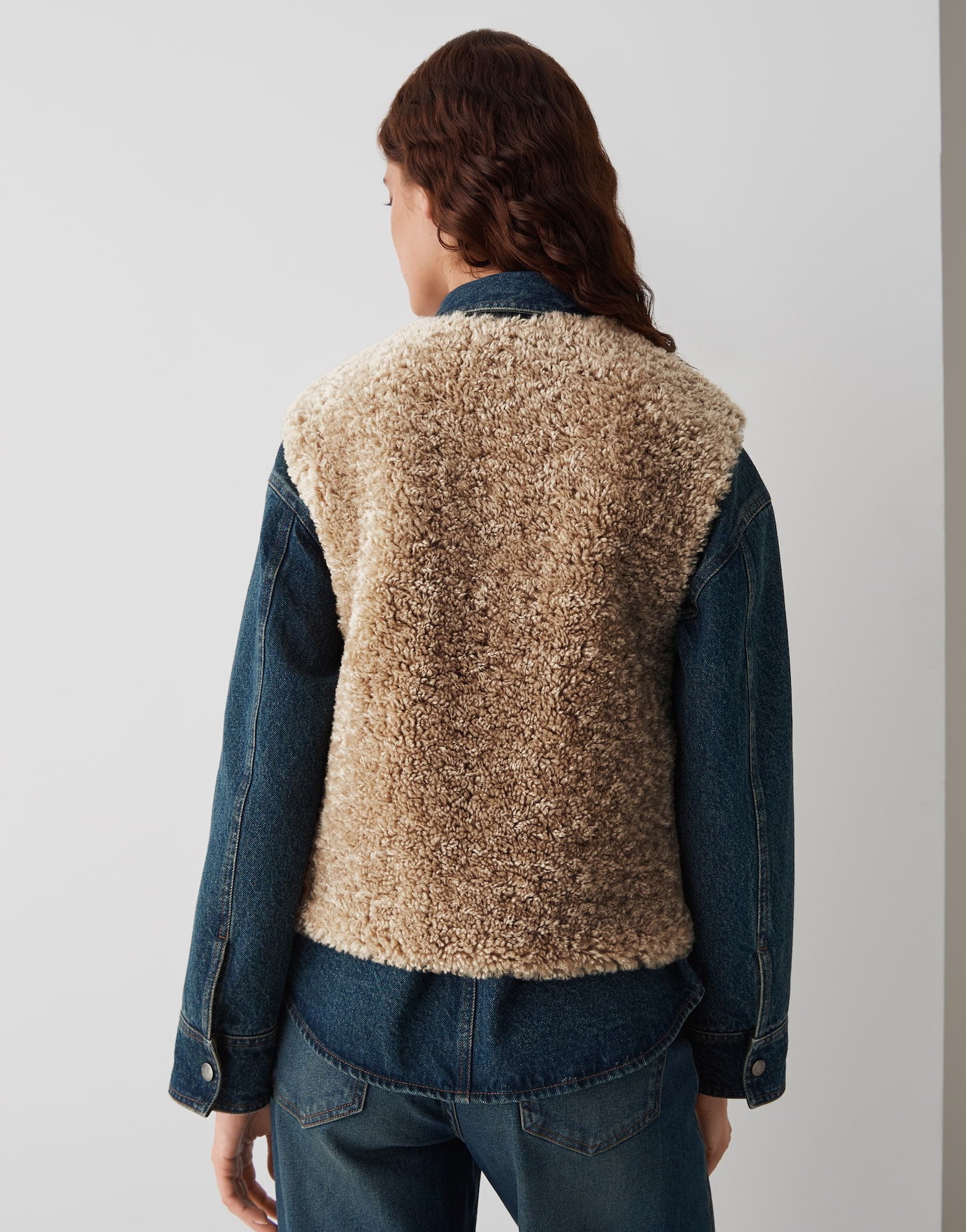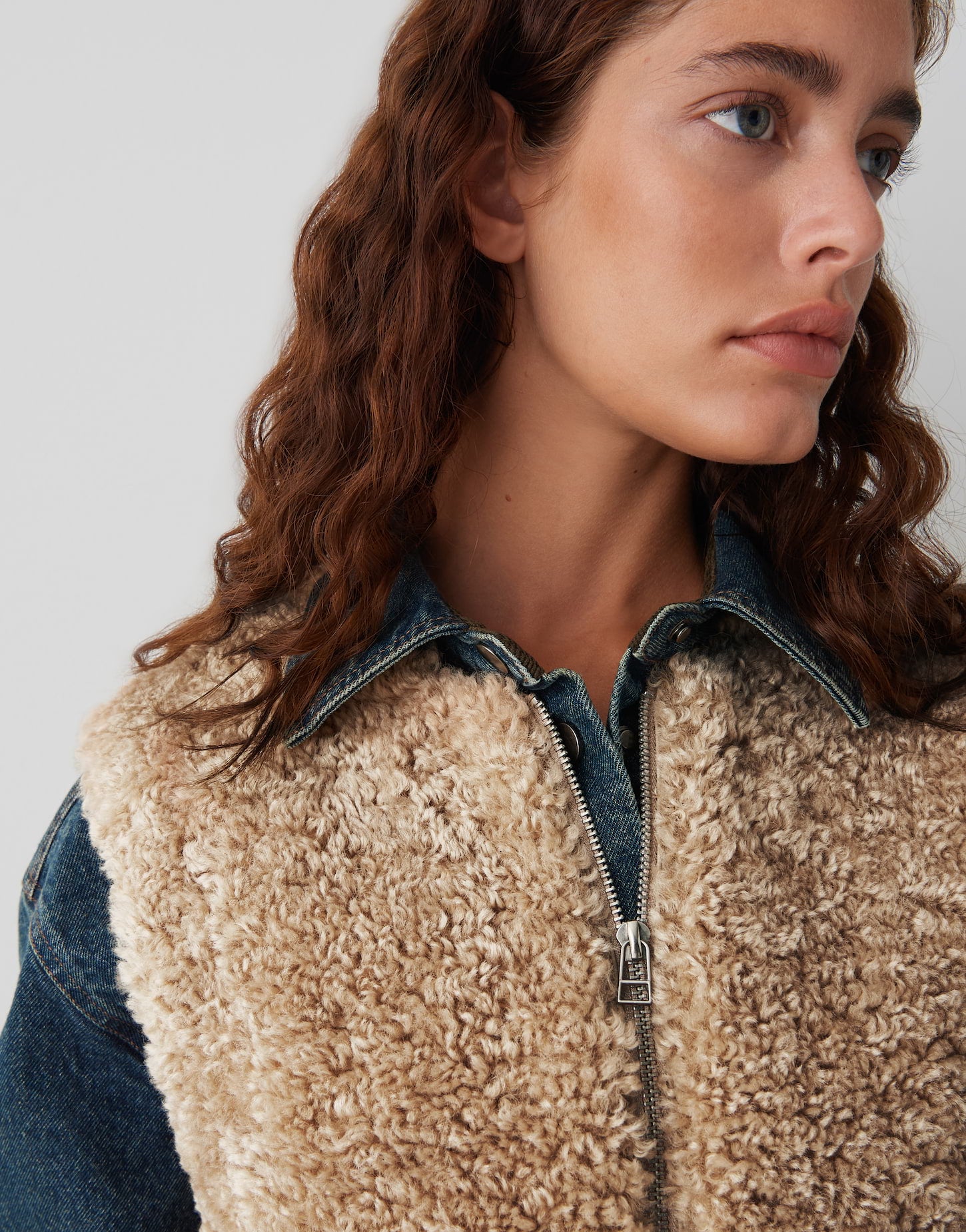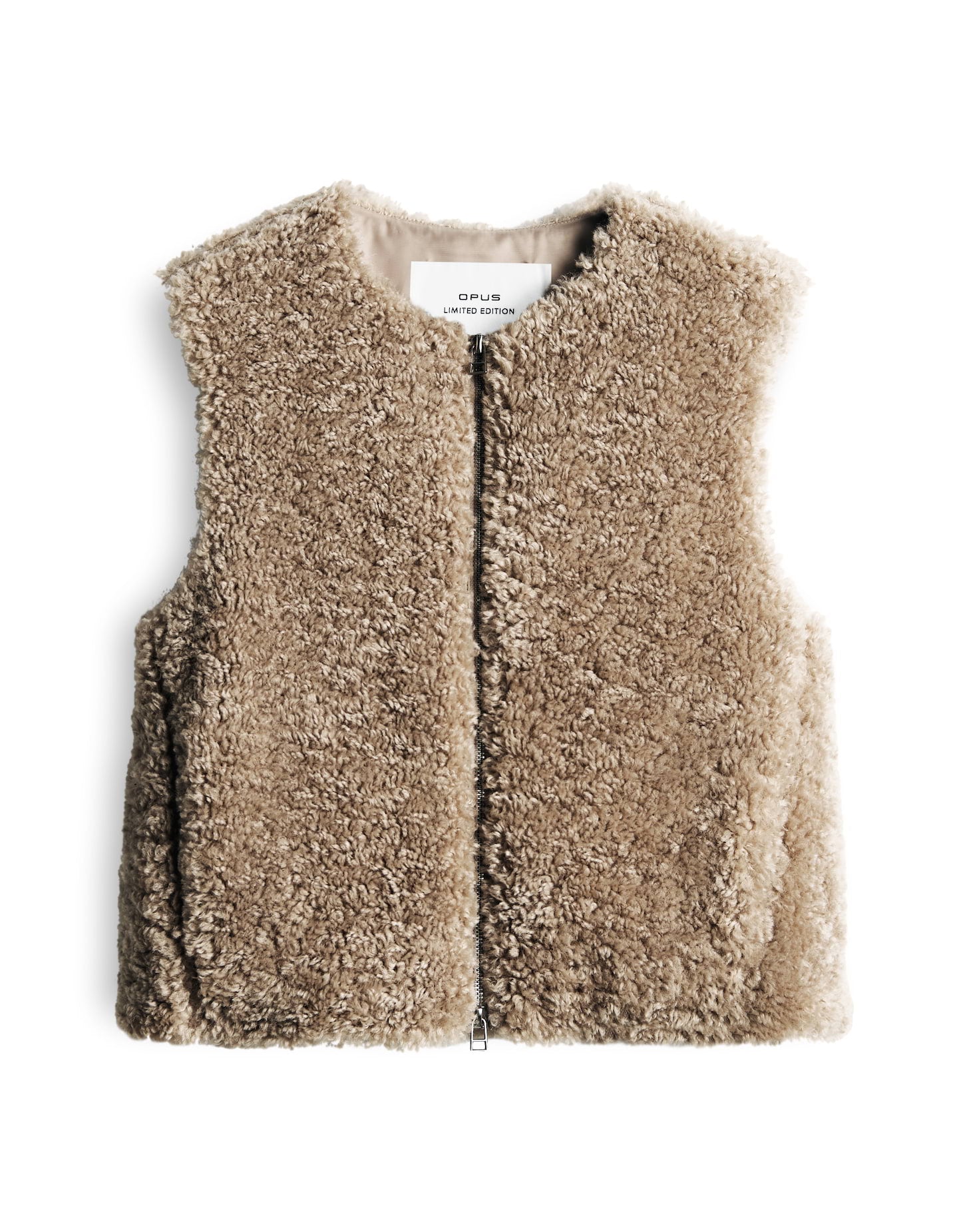 normale Passform, gerader Schnitt, ärmellos, Rundhalsausschnitt, Rückenlänge ca. 53 cm bei Größe 36, Model Größe 177 cm – trägt Größe 36, Teddyfell, Webware, Futter: Polyester, flauschiger Griff, Nahttaschen vorne, Zwei-Wege-Reißverschluss