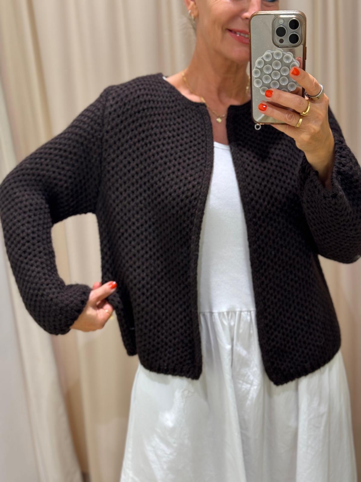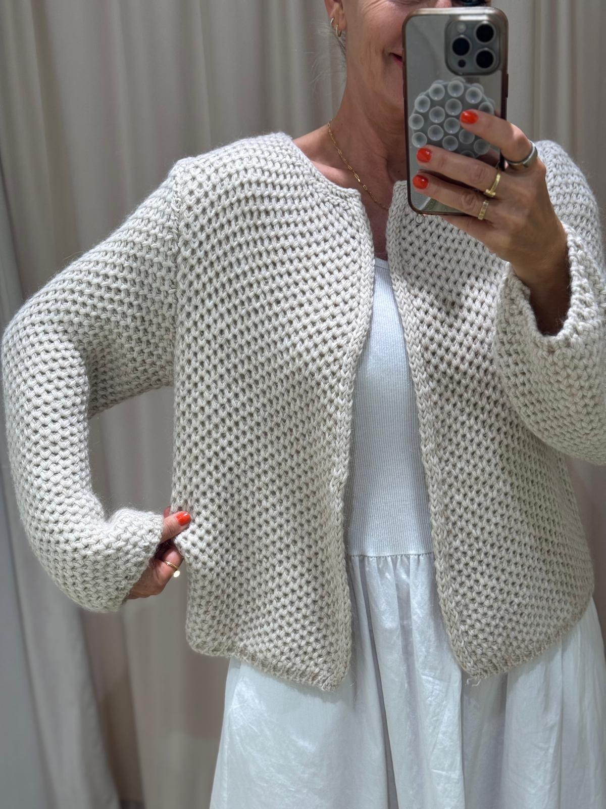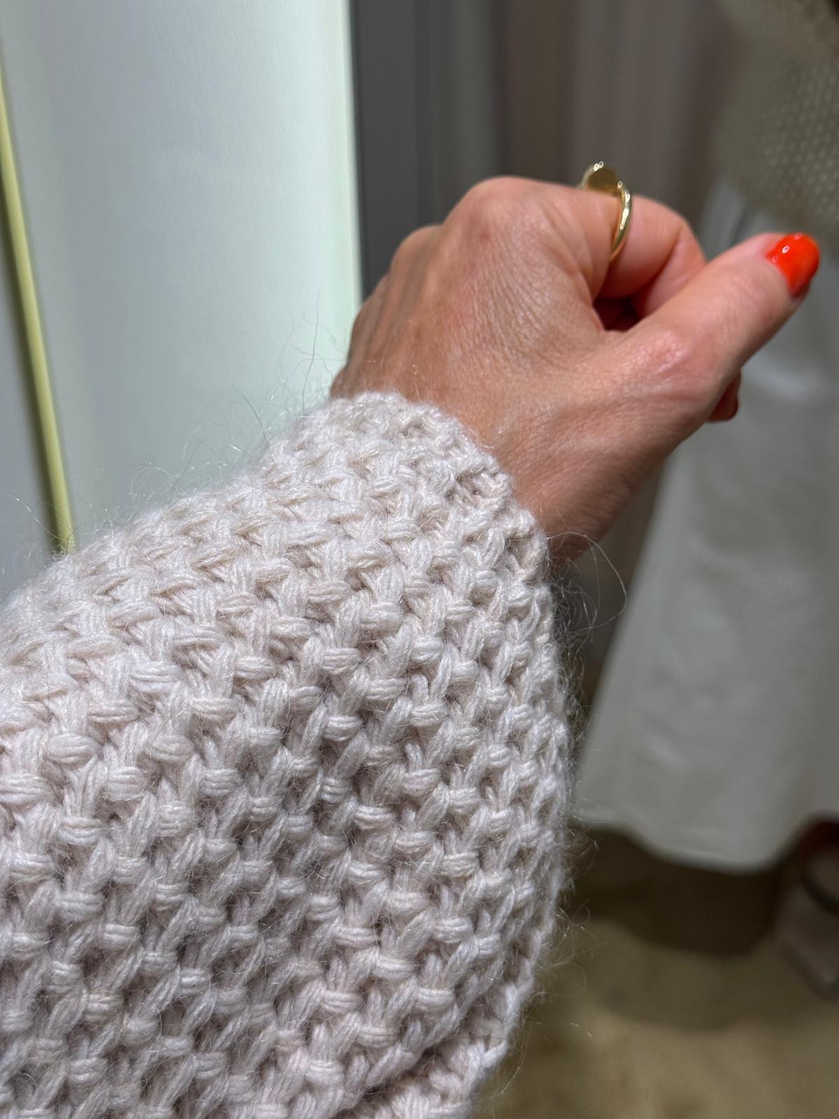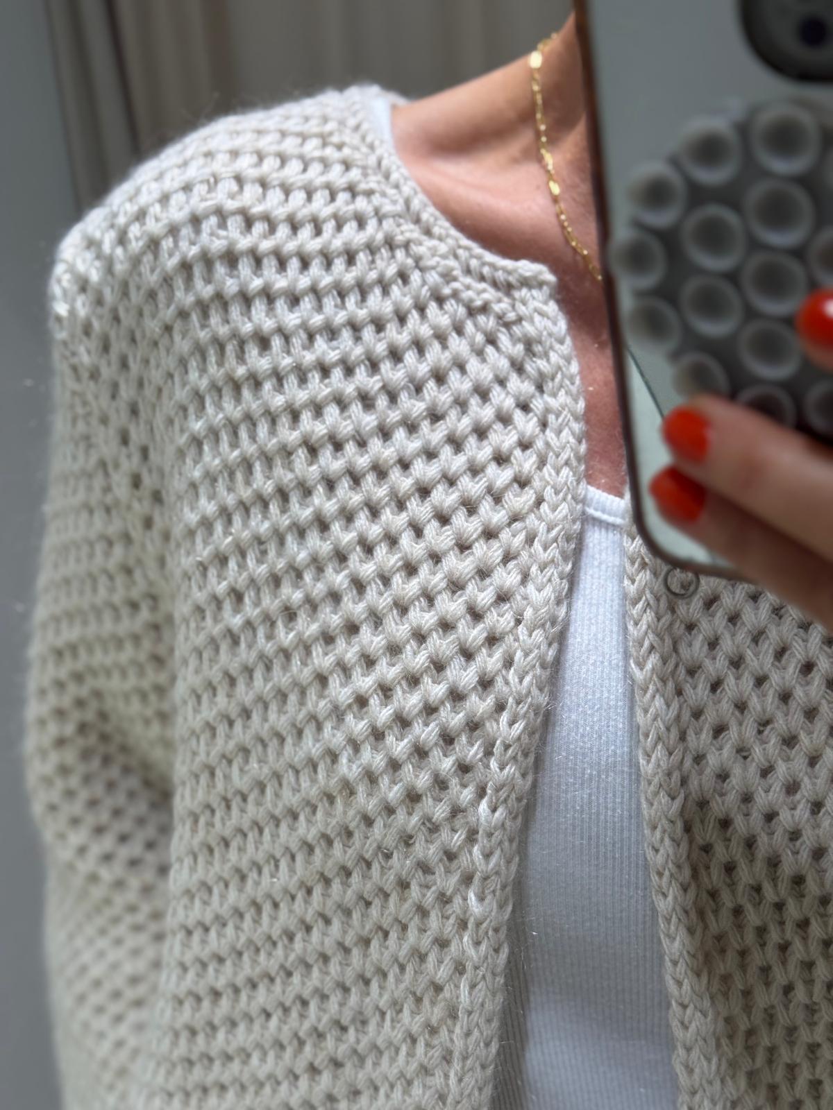 Diese Strickweste ist der Inbegriff von schlichter Eleganz. Das grob gestrickte Muster verleiht ihr Struktur, während der lockere Schnitt für einen modernen, cleanen Look sorgt. Dank des edlen Materialmixes mit Mohair und Wolle ist sie kuschelig weich, wärmend und gleichzeitig leicht – ein idealer Begleiter für jede Jahreszeit. Ob zu Kleid, Jeans oder Business-Look: ein echtes Allround-Piece. Sie ist gut von Größe 34-42 tragbar.