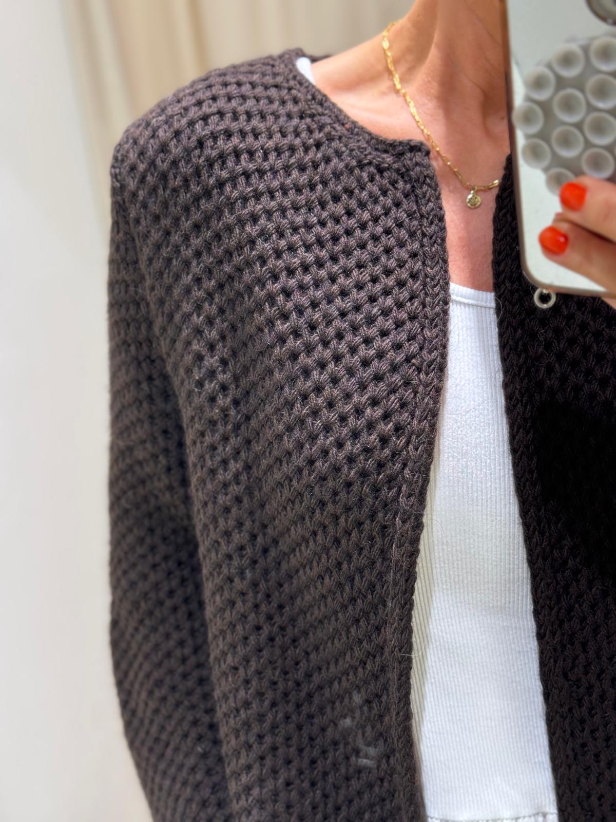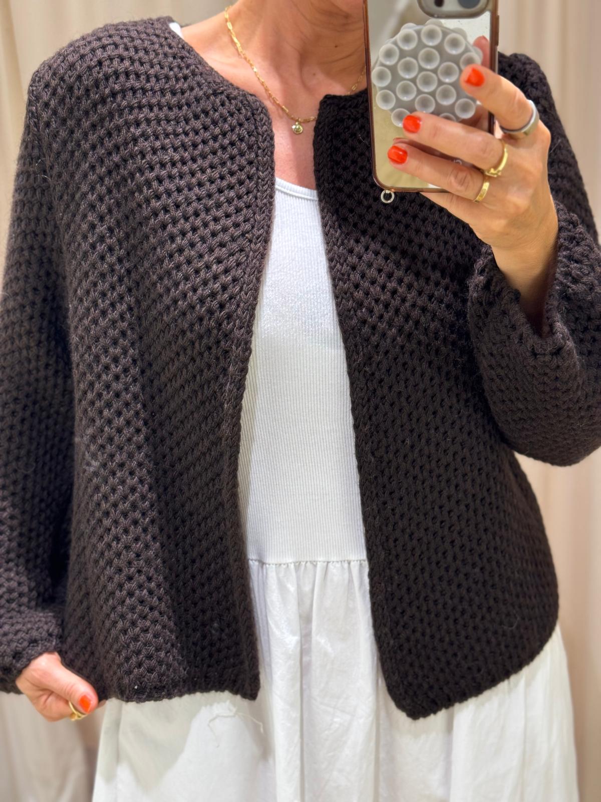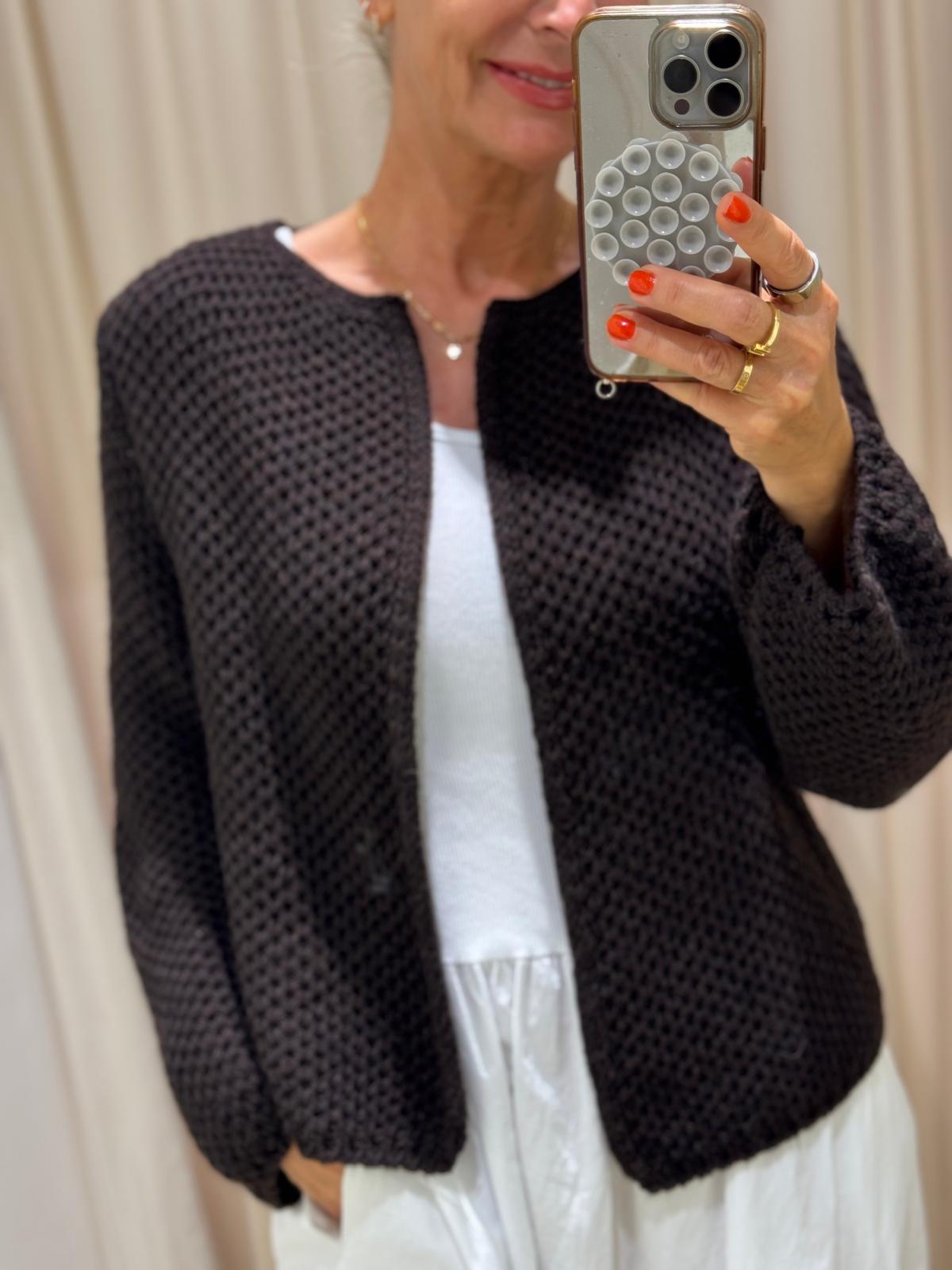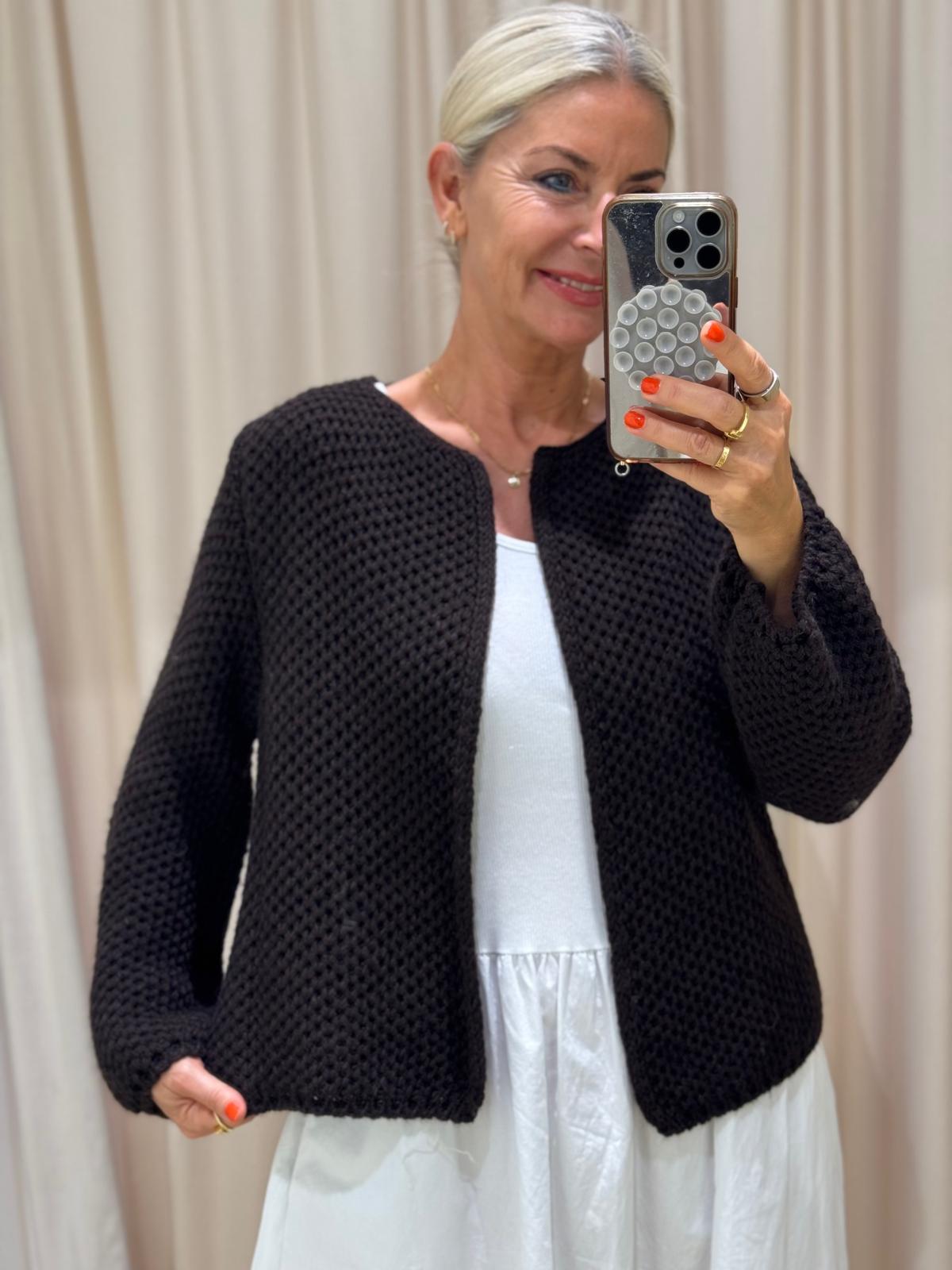 Diese Strickweste ist der Inbegriff von schlichter Eleganz. Das grob gestrickte Muster verleiht ihr Struktur, während der lockere Schnitt für einen modernen, cleanen Look sorgt. Dank des edlen Materialmixes mit Mohair und Wolle ist sie kuschelig weich, wärmend und gleichzeitig leicht – ein idealer Begleiter für jede Jahreszeit. Ob zu Kleid, Jeans oder Business-Look: ein echtes Allround-Piece. Sie ist gut von Größe 34-42 tragbar.
